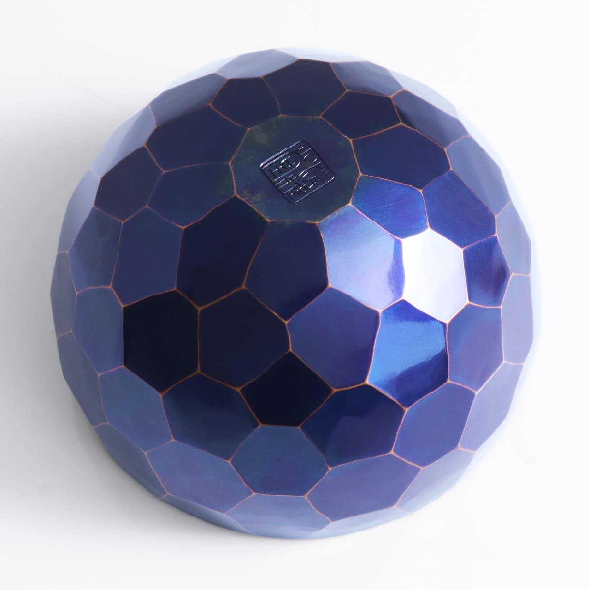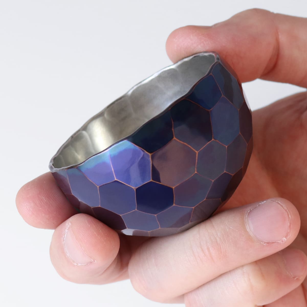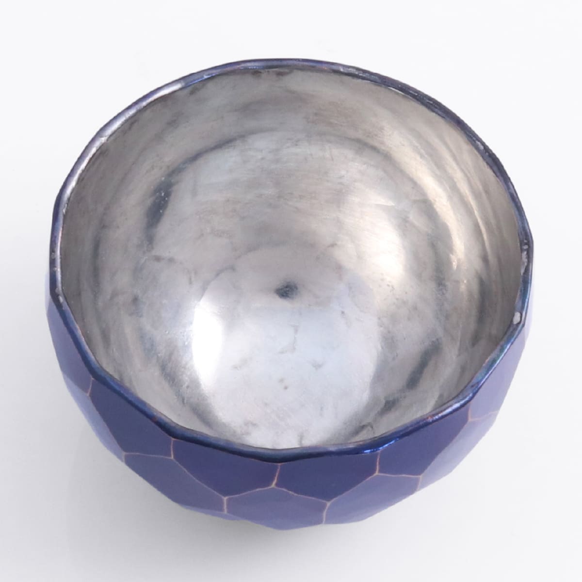 4. [清雅堂]鎚起銅器|酒器|亀甲紋「ぐい呑み」青藍色(口径60mm、容量64ml)
